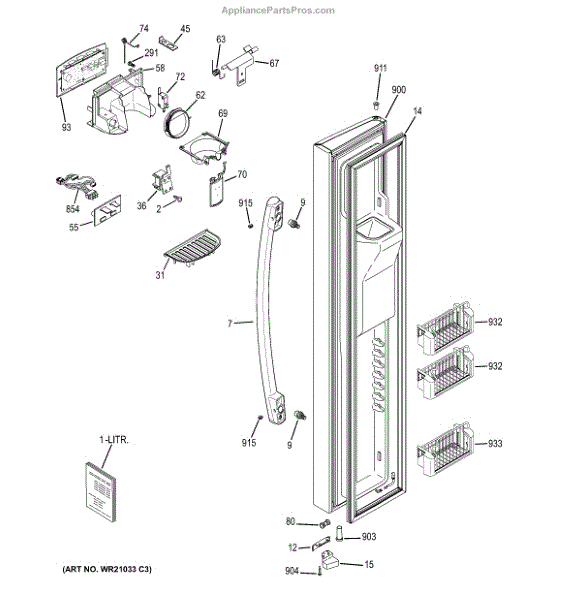 The Arc Handle is an OEM part for GE refrigerators. It is designed to provide a sturdy and ergonomic grip for opening and closing the refrigerator door. The handle measures approximately 34 inches long by 2 inches wide.