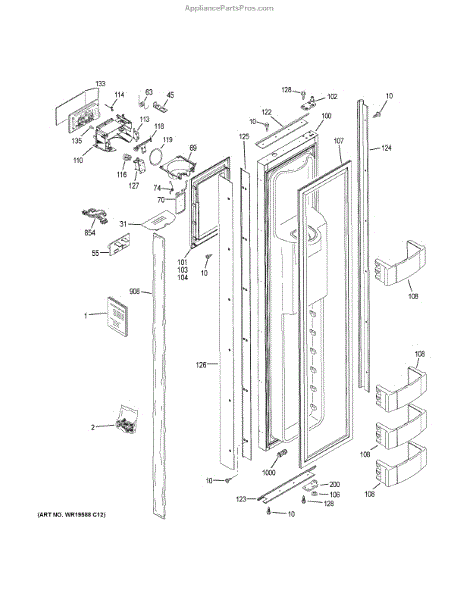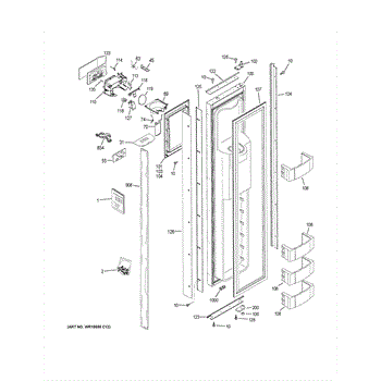The Door Recess Spring is an OEM replacement part for GE side-by-side refrigerators. It sits within the icemaker door frame to control movement and allow smooth closing/opening of the access point.