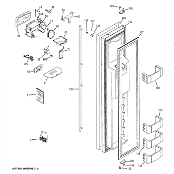 The Ice Door Assembly is an OEM part for GE refrigerators. It is integral to the ice dispenser system, controlling access to the ice chute. This component ensures the efficient delivery of ice cubes or crushed ice when activated and seals off the chute when not in use to maintain the freezer's temperature and prevent frost buildup.