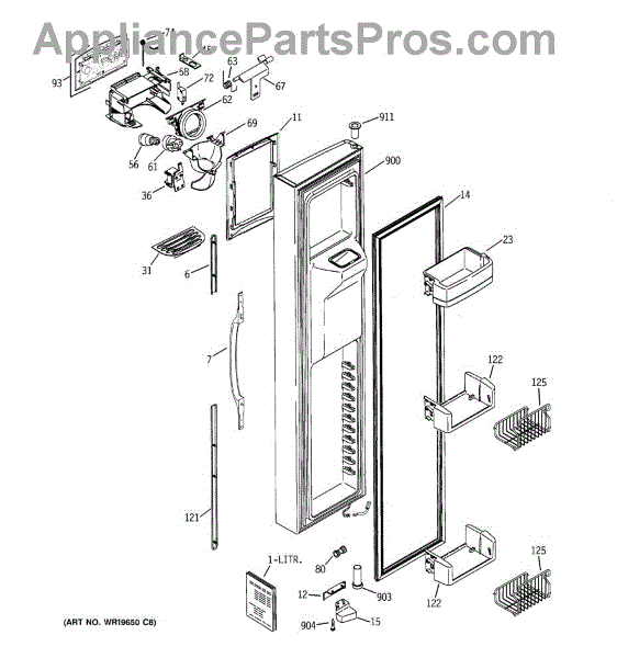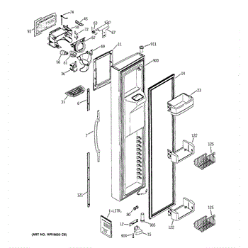 The Ice Door Assembly is an OEM part for GE refrigerators. It is integral to the ice dispenser system, controlling access to the ice chute. This component ensures the efficient delivery of ice cubes or crushed ice when activated and seals off the chute when not in use to maintain the freezer's temperature and prevent frost buildup.