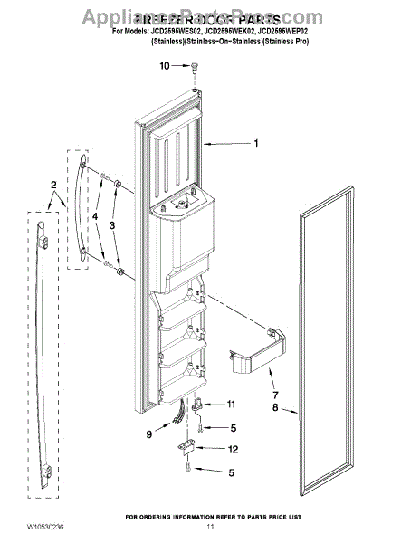 Parts for Jenn-Air JCD2595WES02: 07 - Freezer Door Parts