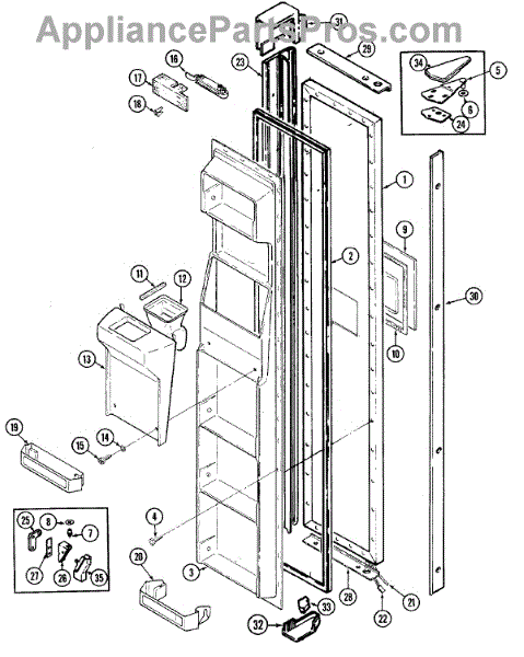 Washer for refrigerators. Installs between screws and mounting surfaces to distribute pressure and prevent damage. Replace if missing, worn, or cracked.