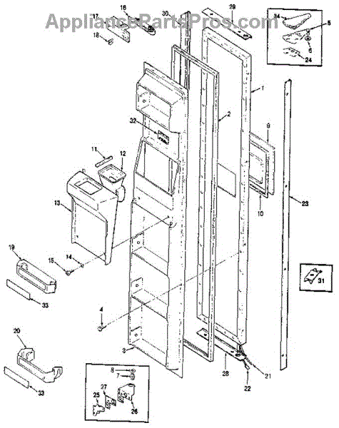 Washer for refrigerators. Installs between screws and mounting surfaces to distribute pressure and prevent damage. Replace if missing, worn, or cracked.