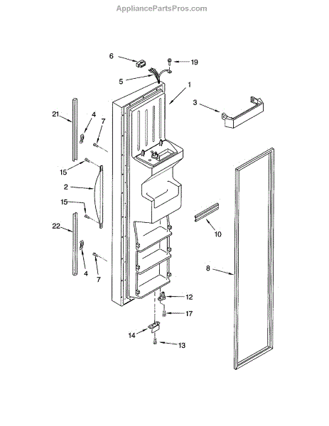 This ice container assembly holds and channels cubed ice from the ice maker to the dispenser area, keeping ice contained and ready for use. It replaces a cracked, warped or missing ice bin to restore normal ice storage. What it does