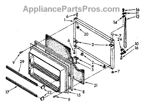 This freezer door gasket seals the door to the cabinet to keep cold air in and humid air out. Replacing a worn gasket restores a proper seal, helping maintain temperature and reducing frost and condensation around the door.