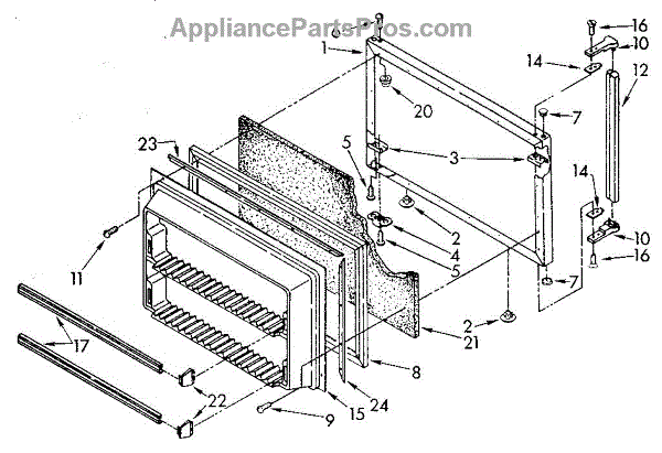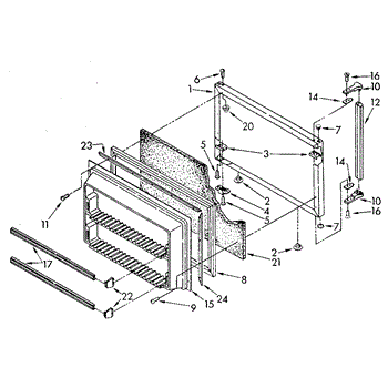 This freezer door gasket seals the door to the cabinet to keep cold air in and humid air out. Replacing a worn gasket restores a proper seal, helping maintain temperature and reducing frost and condensation around the door.