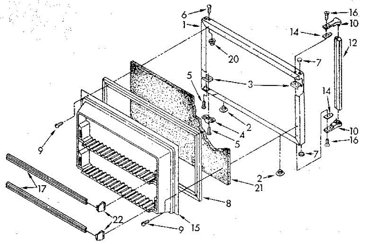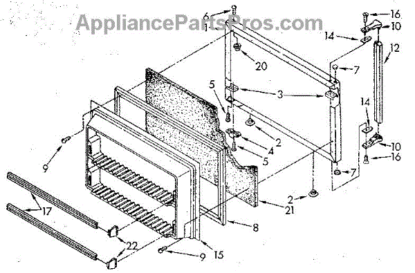 This freezer door gasket seals the door to the cabinet to keep cold air in and humid air out. Replacing a worn gasket restores a proper seal, helping maintain temperature and reducing frost and condensation around the door.