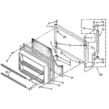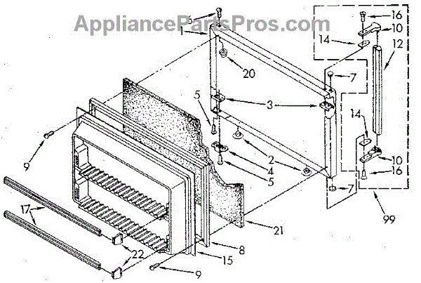 This freezer door gasket seals the door to the cabinet to keep cold air in and humid air out. Replacing a worn gasket restores a proper seal, helping maintain temperature and reducing frost and condensation around the door.