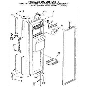 Parts for Kenmore 106.9537653 (1069537653, 106 9537653): Freezer Door Parts
