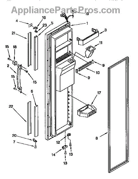 Parts for Kenmore 106.9555923 (1069555923, 106 9555923): Freezer Door Parts