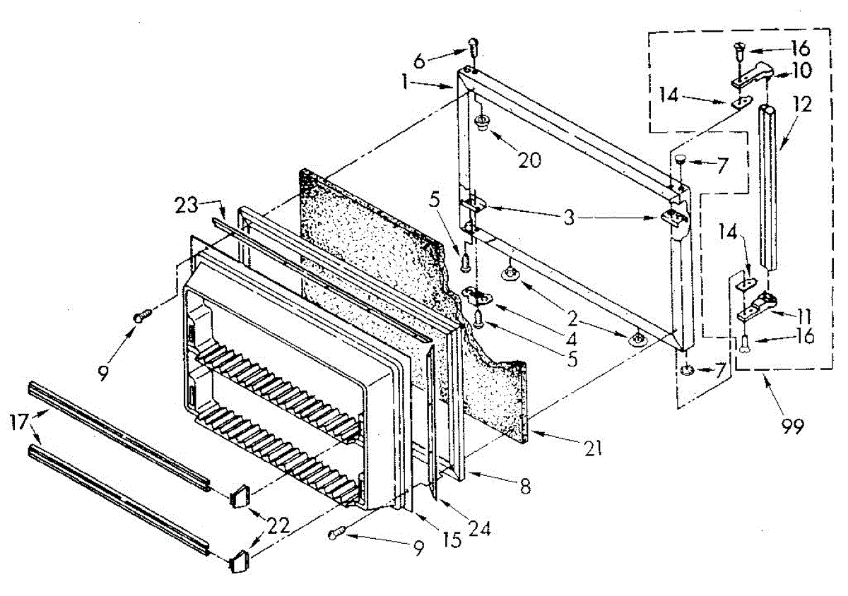 Parts for Kenmore 106.9610583 (1069610583, 106 9610583): Freezer Door Parts