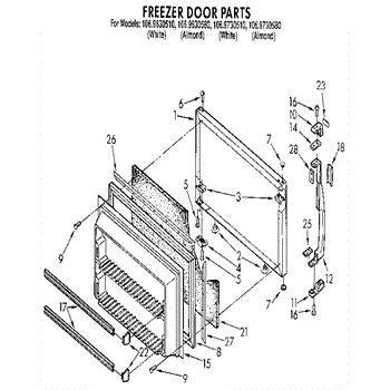 Parts for Kenmore 106.9630510 (1069630510, 106 9630510): Freezer Door Parts