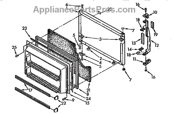 This freezer door gasket seals the door to the cabinet to keep cold air in and humid air out. Replacing a worn gasket restores a proper seal, helping maintain temperature and reducing frost and condensation around the door.