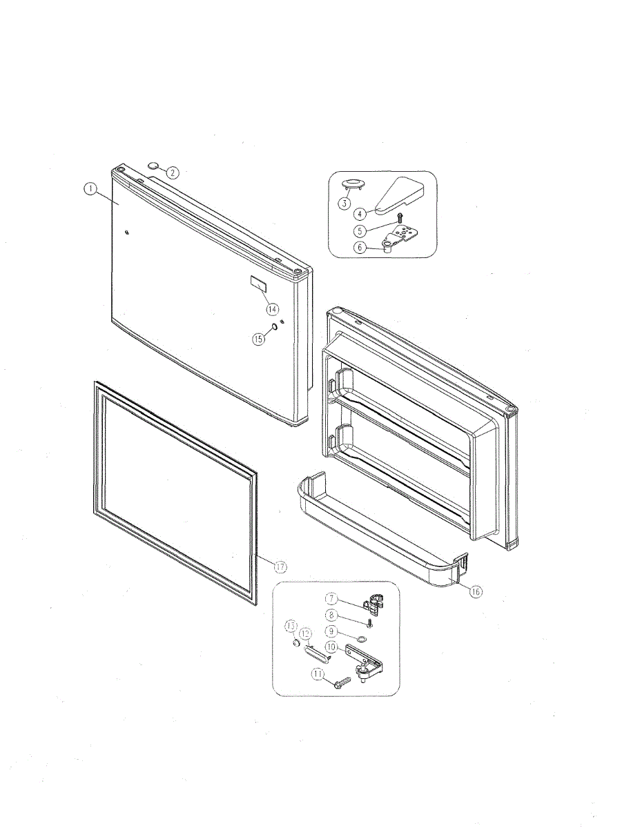 Parts for Kenmore 111.61202711 (11161202711, 111 61202711): Freezer Door Parts