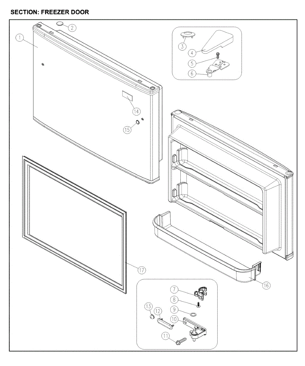 Parts for Kenmore 111.61202714 (11161202714, 111 61202714): Freezer Door Parts