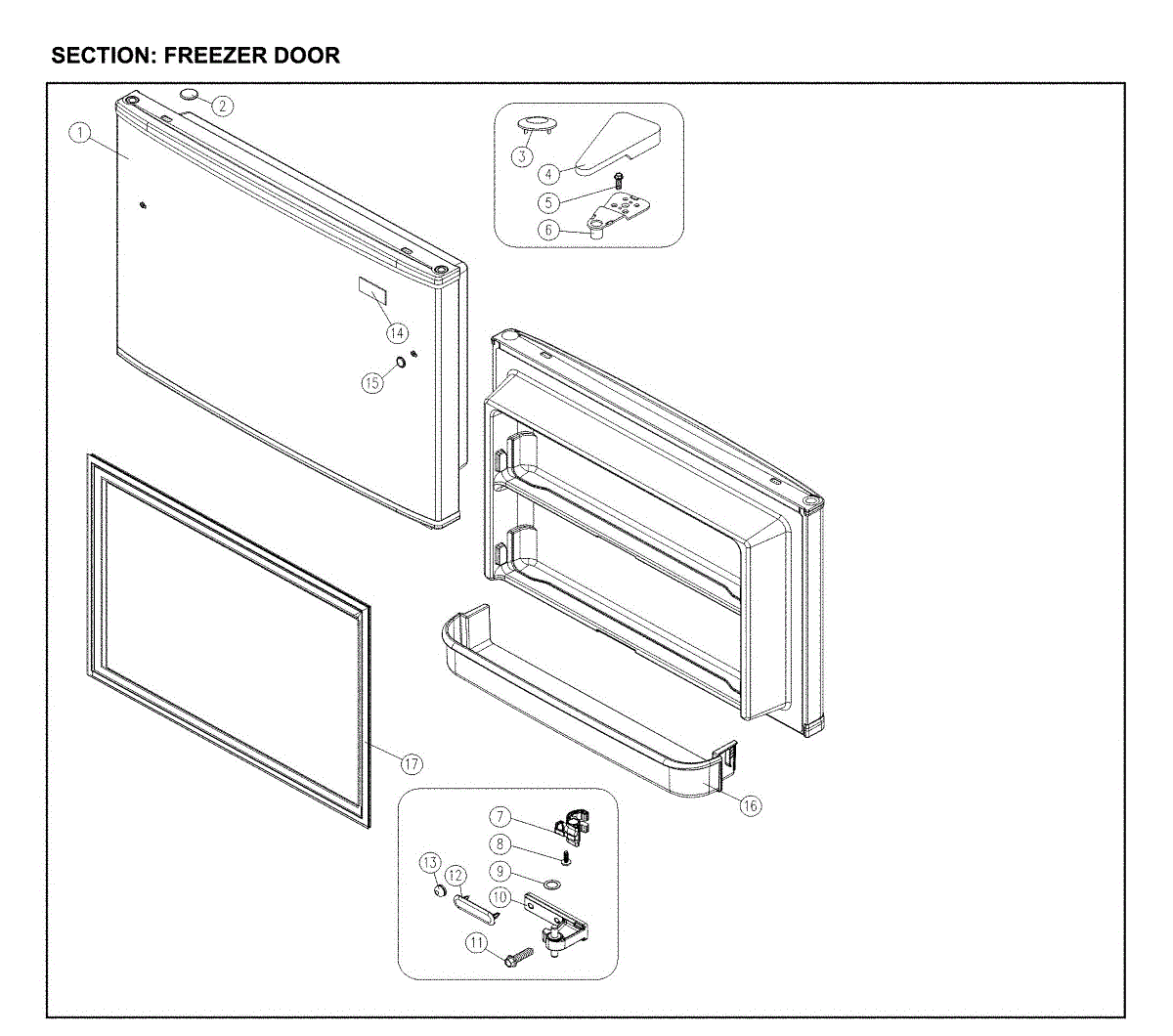 Parts for Kenmore 111.61212612 (11161212612, 111 61212612): Freezer Door Parts