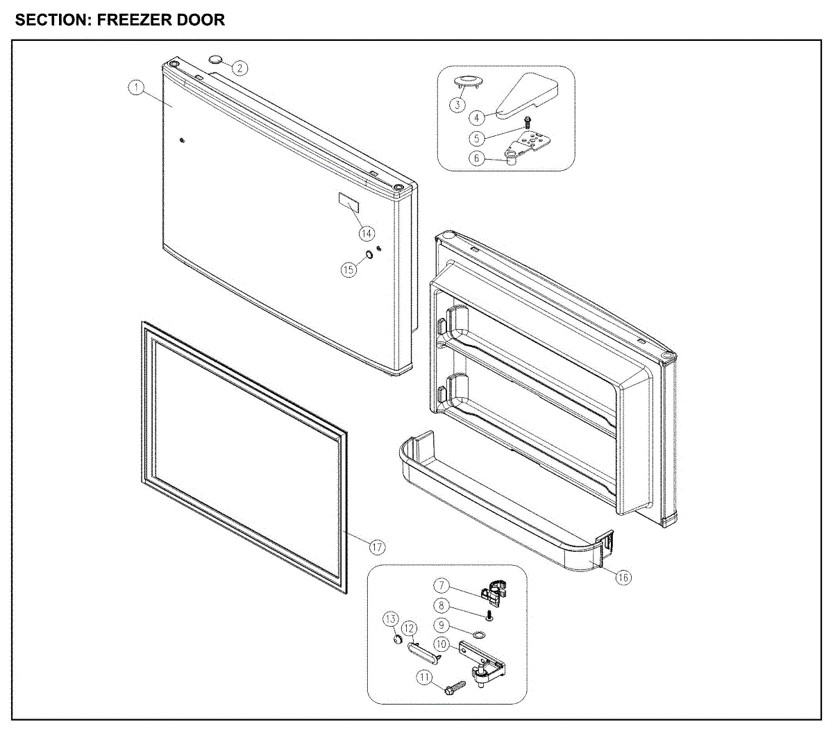 Parts for Kenmore 111.71212612 (11171212612, 111 71212612): Freezer Door Parts