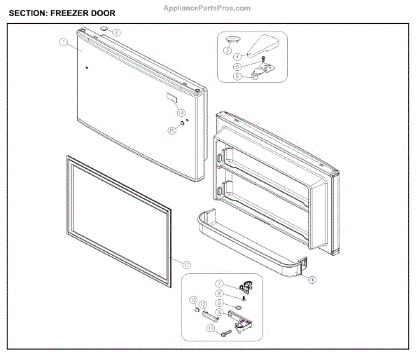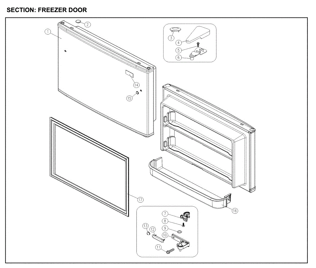 Parts for Kenmore 111.71219612 (11171219612, 111 71219612): Freezer Door Parts