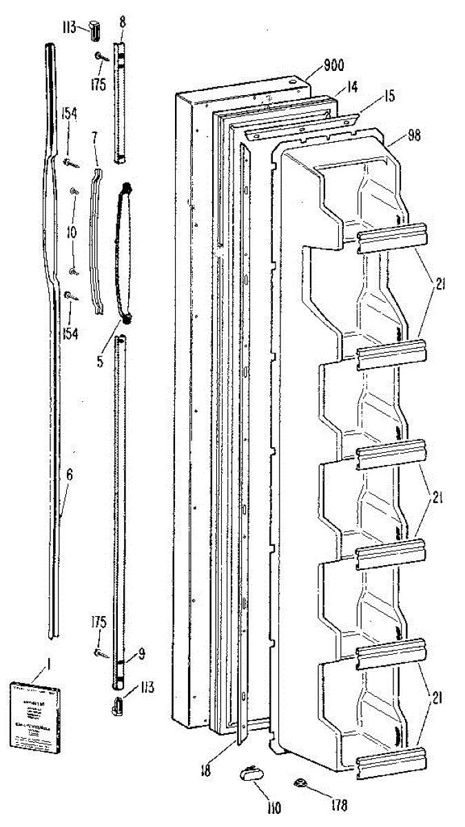 Parts for Kenmore 363.8400412 (3638400412, 363 8400412): Freezer Door Parts
