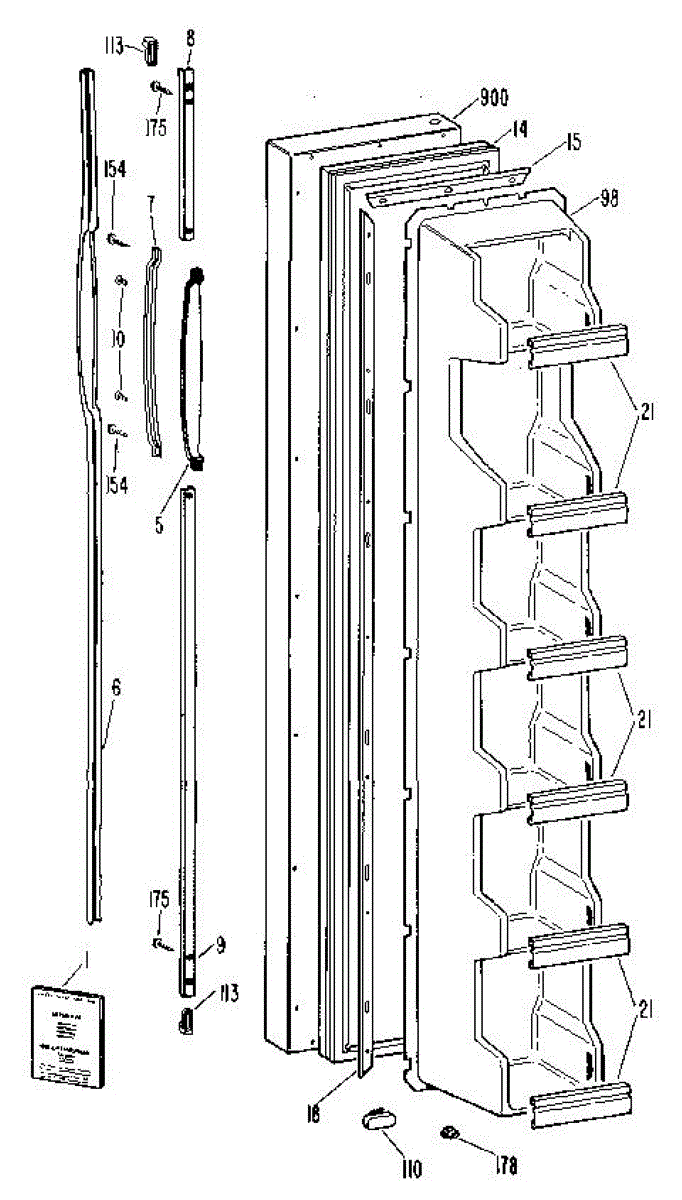 Parts for Kenmore 363.8400486 (3638400486, 363 8400486): Freezer Door Parts