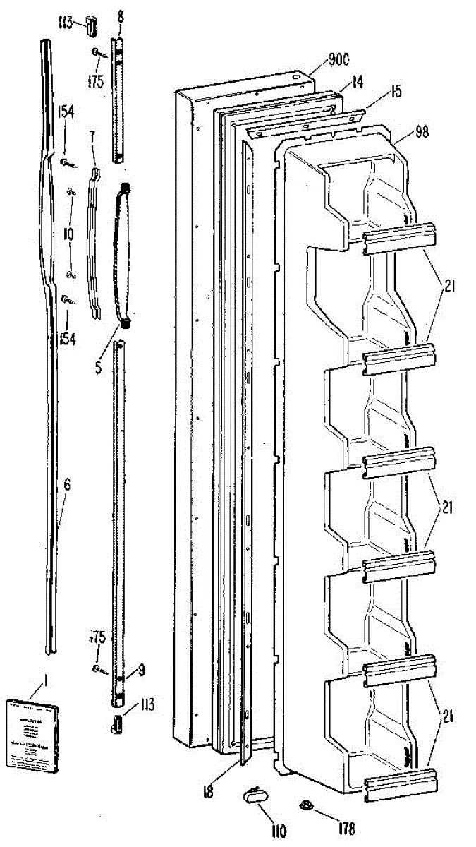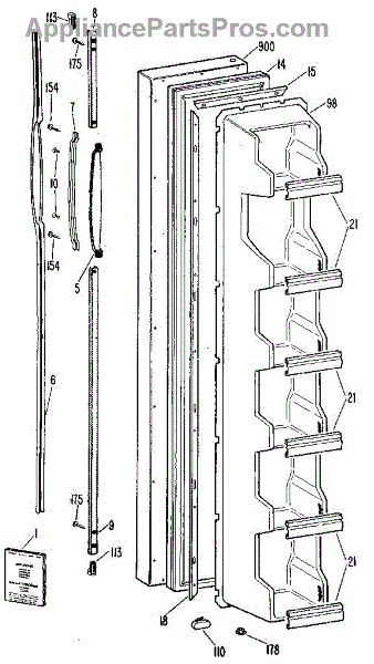 Parts for Kenmore 363.8500411 (3638500411, 363 8500411): Freezer Door Parts