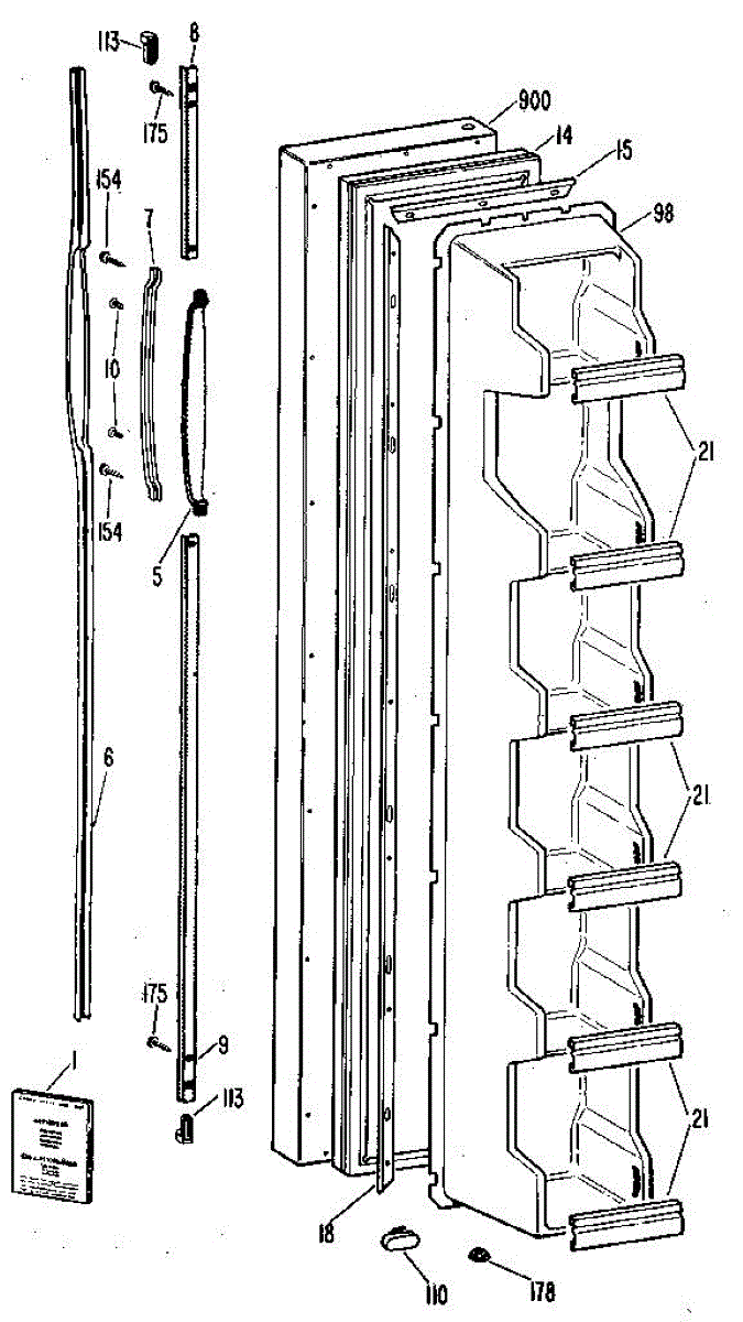 Parts for Kenmore 363.8500482 (3638500482, 363 8500482): Freezer Door Parts