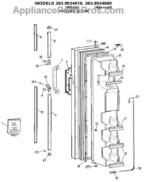 Parts for Kenmore 363.9534880 (3639534880, 363 9534880): Freezer Door Parts