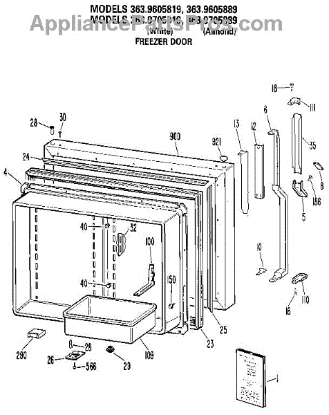 Parts for Kenmore 363.9605889 (3639605889, 363 9605889): Freezer Door Parts