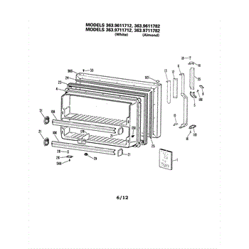 Parts for Kenmore 363.9611782 (3639611782, 363 9611782): Freezer Door Parts