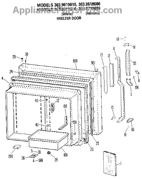 Parts for Kenmore 363.9619686 (3639619686, 363 9619686): Freezer Door Parts
