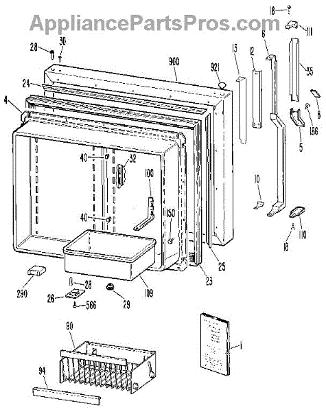 Parts for Kenmore 363.9625883 (3639625883, 363 9625883): Freezer Door Parts