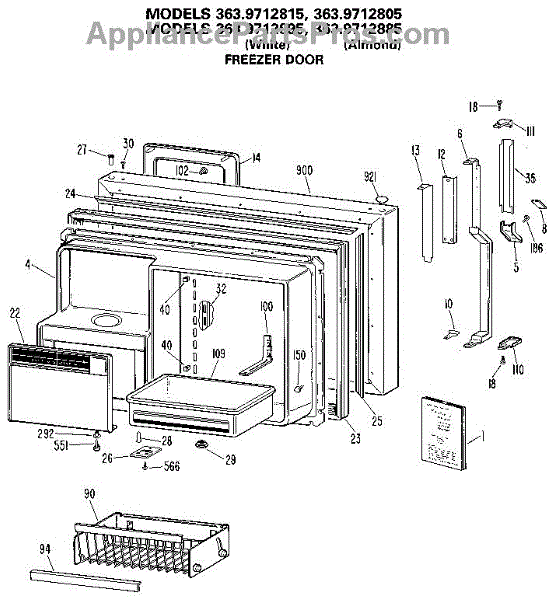 Parts for Kenmore 363.9712895 (3639712895, 363 9712895): Freezer Door Parts