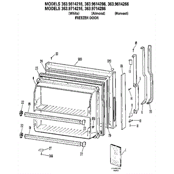 Parts for Kenmore 363.9714216 (3639714216, 363 9714216): Freezer Door Parts