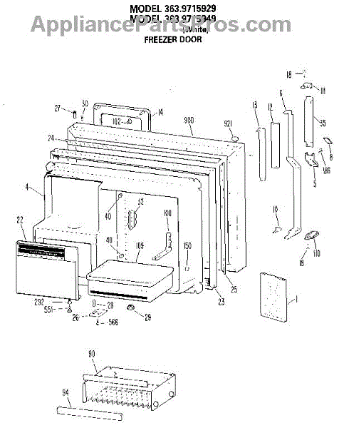 Parts for Kenmore 363.9715929 (3639715929, 363 9715929): Freezer Door Parts