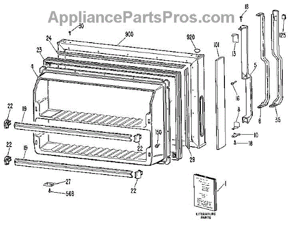 Parts for Kenmore 363.9716510 (3639716510, 363 9716510): Freezer Door Parts