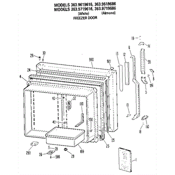 Parts for Kenmore 363.9719616 (3639719616, 363 9719616): Freezer Door Parts