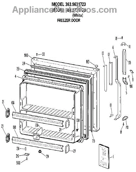 Parts for Kenmore 363.9731723 (3639731723, 363 9731723): Freezer Door Parts