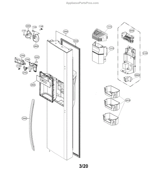 Parts for Kenmore 795.51833414 (79551833414, 795 51833414): Freezer Door Parts