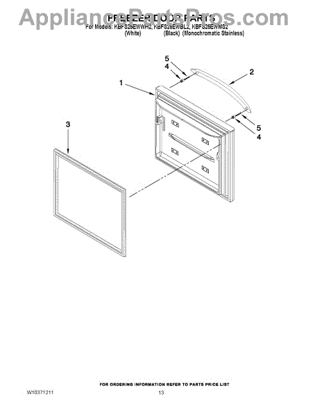 Parts for Kitchenaid KBFS25EWWH2: 07 - Freezer Door Parts