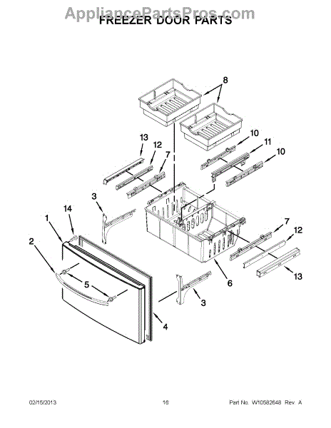 This freezer upper drawer glide replaces the worn slide that guides the upper freezer basket in and out. Restores smooth, aligned drawer movement and reduces binding or scraping caused by a cracked or damaged glide. What it does: