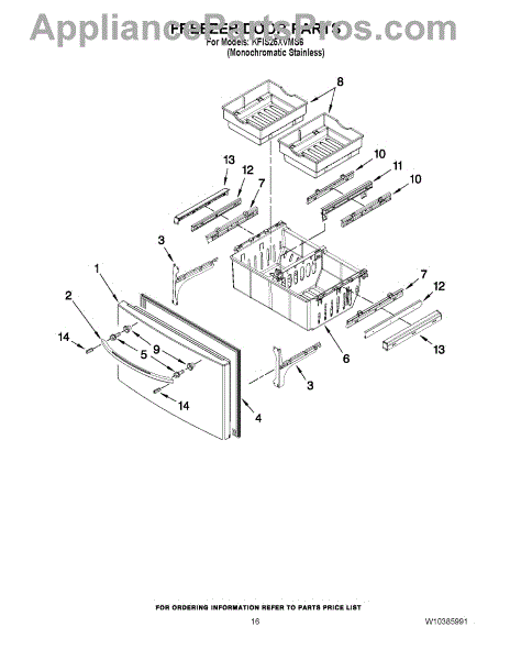 Parts for Kitchenaid KFIS25XVMS6: 09 - Freezer Door Parts