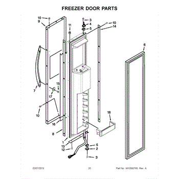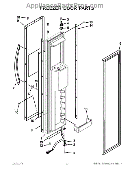 This shallow freezer door bin mounts on the inner door and restores organized storage for smaller items. Replace a cracked, loose, or missing bin to keep packages secure and easy to access.