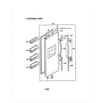 The Door Stopper Assembly is an OEM replacement part for LG French door refrigerators. It is a crucial internal component that ensures the refrigerator door is held securely open at the desired angle.