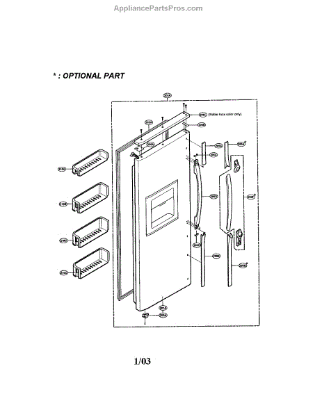 The Ice Chute Door is an OEM part for LG refrigerators. It is located in the ice dispenser area on the front of the refrigerator. It opens and closes automatically when ice is dispensed, ensuring a controlled release of ice cubes or crushed ice into the user's glass or container. The door helps to prevent frost buildup, maintain proper insulation, and protect the ice inside the dispenser.