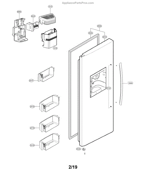 The Door Basket is an OEM part for LG refrigerators. This basket attaches to the interior of the refrigerator door, providing additional storage space for items such as bottles, jars, and other small containers, making it easy to organize and access frequently used items.