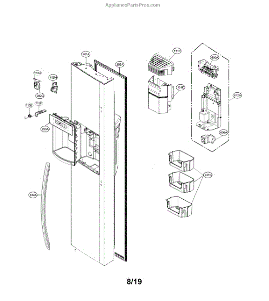 The Ice Maker Assembly is an OEM replacement part for LG refrigerators. It automatically produces and dispenses batches of ice through the ice bucket and into the storage bin. Proper ice production is crucial for cold beverages and food preservation. Causes of a bad ice maker assembly can be failures in the electronic control board, freezing components or water supply system. Regular filter changes help prevent excess mineral buildup. Symptoms of a bad ice maker assembly include: