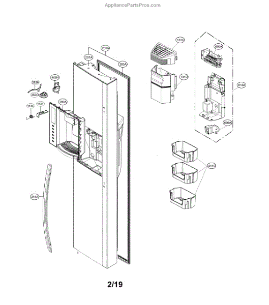 The Ice Maker Assembly is an OEM replacement part for LG refrigerators. It automatically produces and dispenses batches of ice through the ice bucket and into the storage bin. Proper ice production is crucial for cold beverages and food preservation. Causes of a bad ice maker assembly can be failures in the electronic control board, freezing components or water supply system. Regular filter changes help prevent excess mineral buildup. Symptoms of a bad ice maker assembly include: