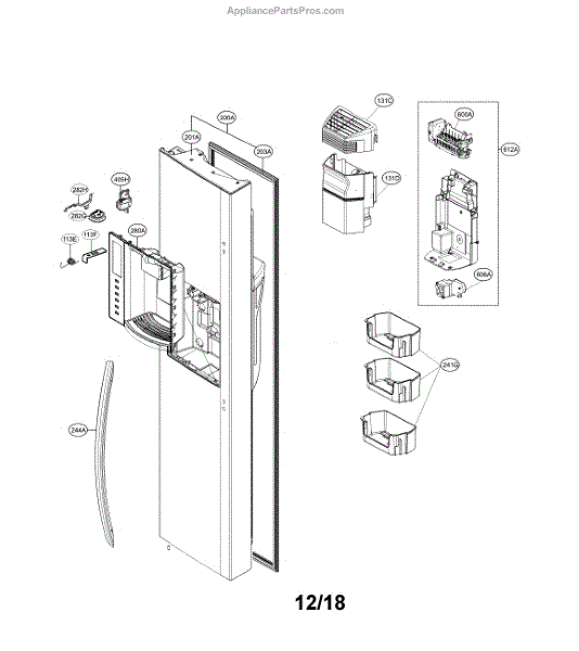 The Ice Maker Assembly is an OEM replacement part for LG refrigerators. It automatically produces and dispenses batches of ice through the ice bucket and into the storage bin. Proper ice production is crucial for cold beverages and food preservation. Causes of a bad ice maker assembly can be failures in the electronic control board, freezing components or water supply system. Regular filter changes help prevent excess mineral buildup. Symptoms of a bad ice maker assembly include: