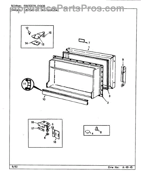 Parts for Magic Chef RB15MA-0A / CG08B: 02 - Freezer Door Parts