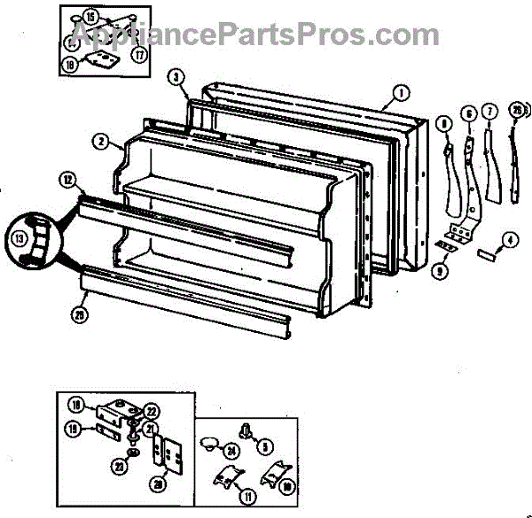 Parts for Magic Chef RB191PA/DG51B: Freezer Door Parts